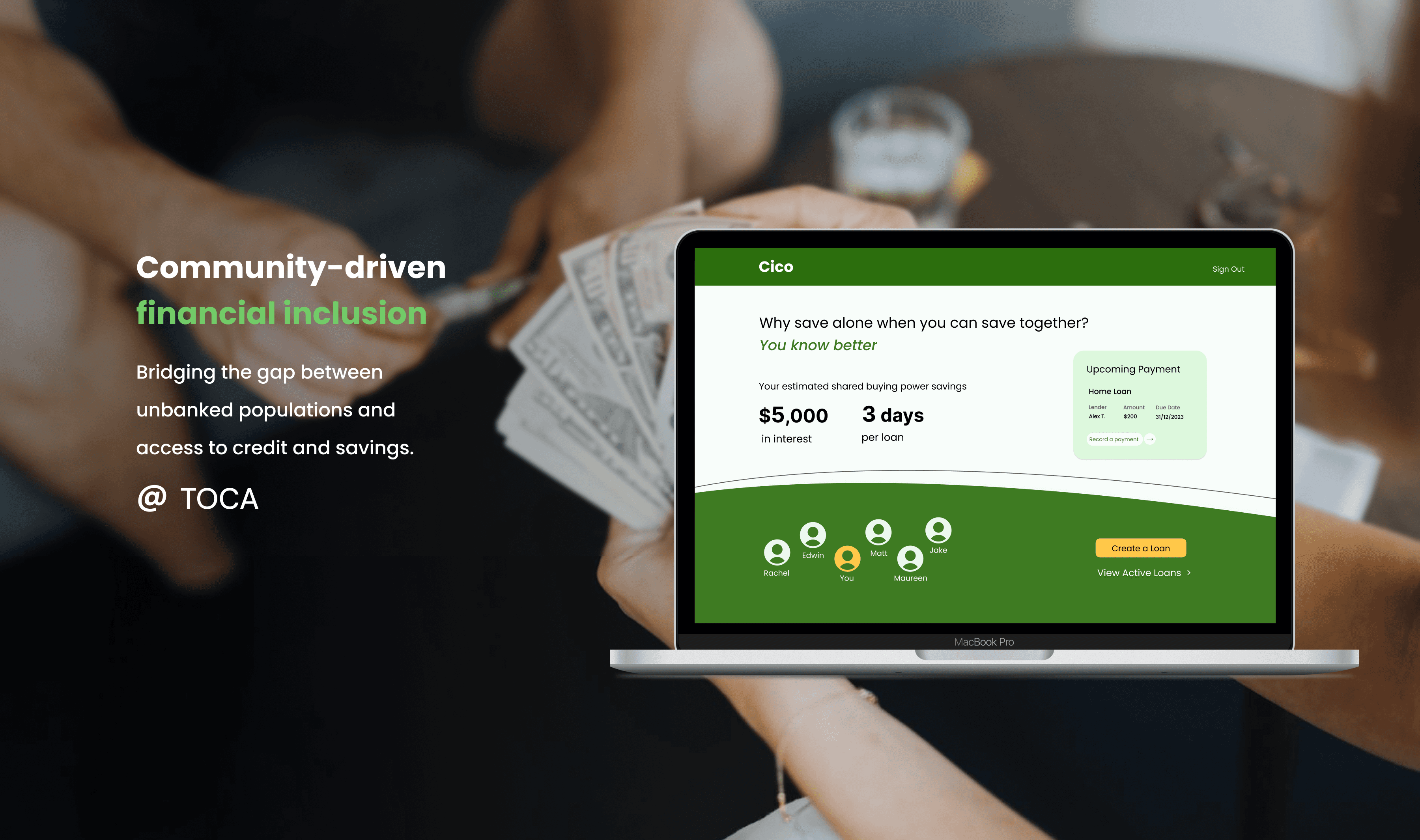 Often decisions on the flow of money are based on personal trust. Available digital platforms require bank accounts, or do not support users throughout the entire process of loaning or receiving money informally.